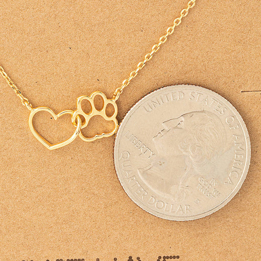 Dog Paw Heart Cutout Pendant Necklace: Gold