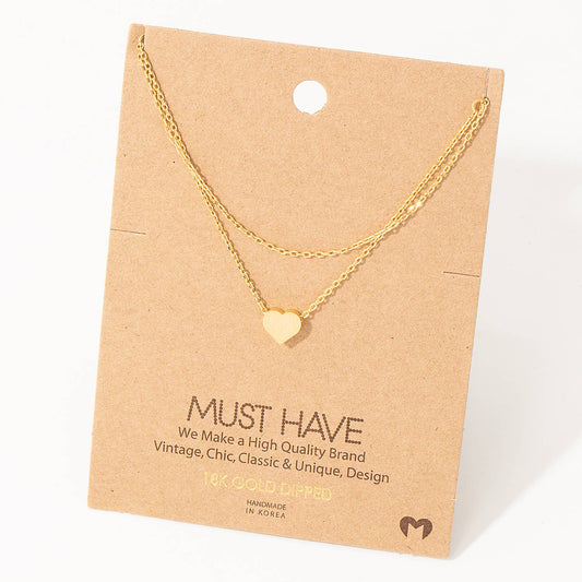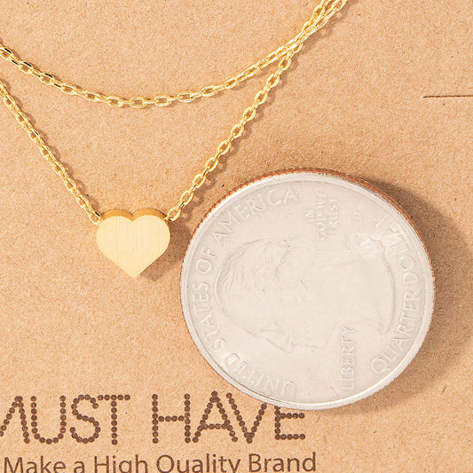 Dainty Layered Chain Heart Charm Necklace: Gold