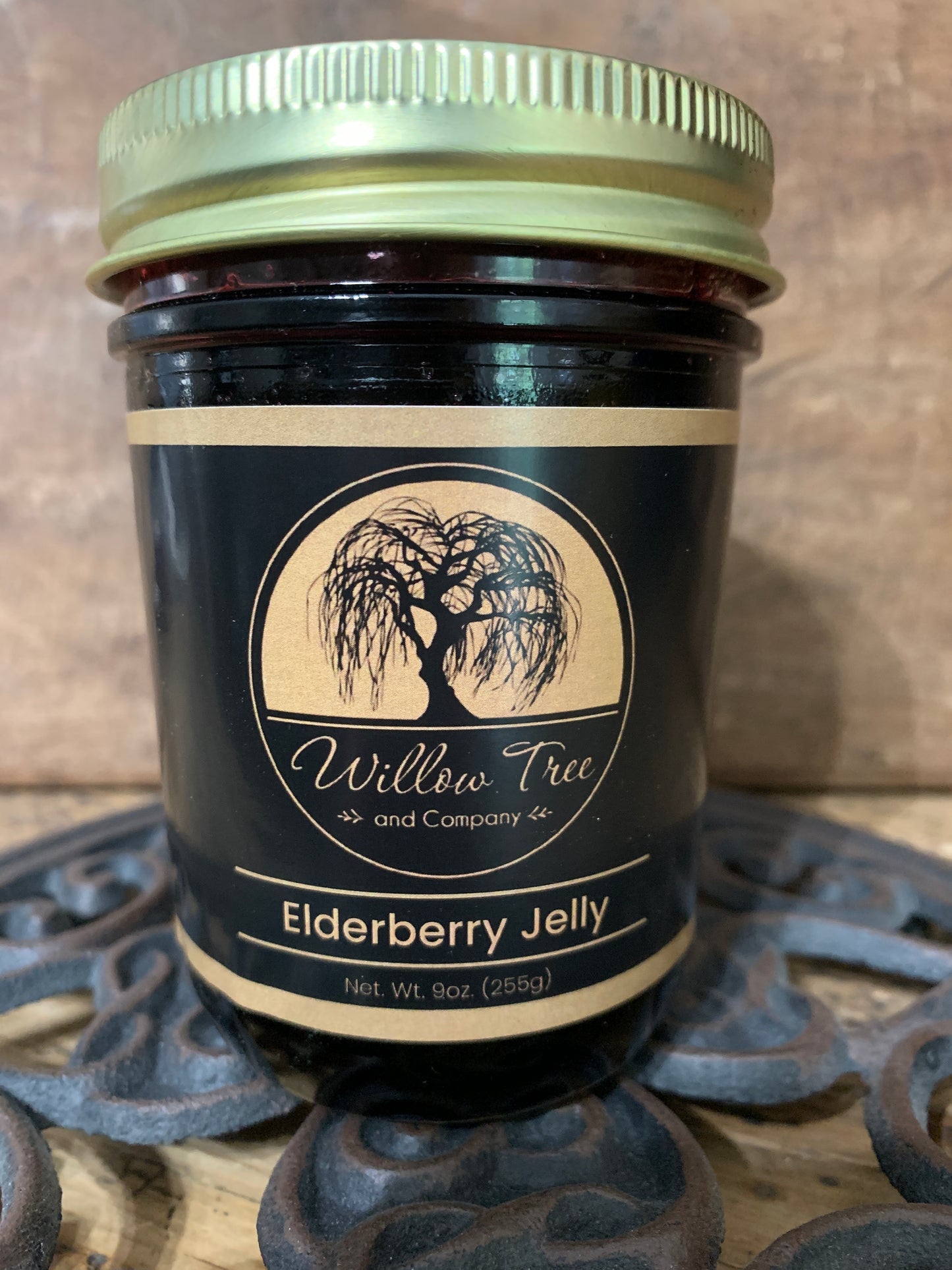 Enjoy our Elderberry Jelly made from homemade recipe. Our Elderberry Jelly is delicious on bagels, French toast, biscuits, English muffins and pancakes. This jelly is all natural with no preservatives or artificial flavors. Elderberry Jelly has a 3 year shelf life. Ingredients: Sugar, Water, Elderberries, Fruite Pectin, Lemon Juice from Concentrate.