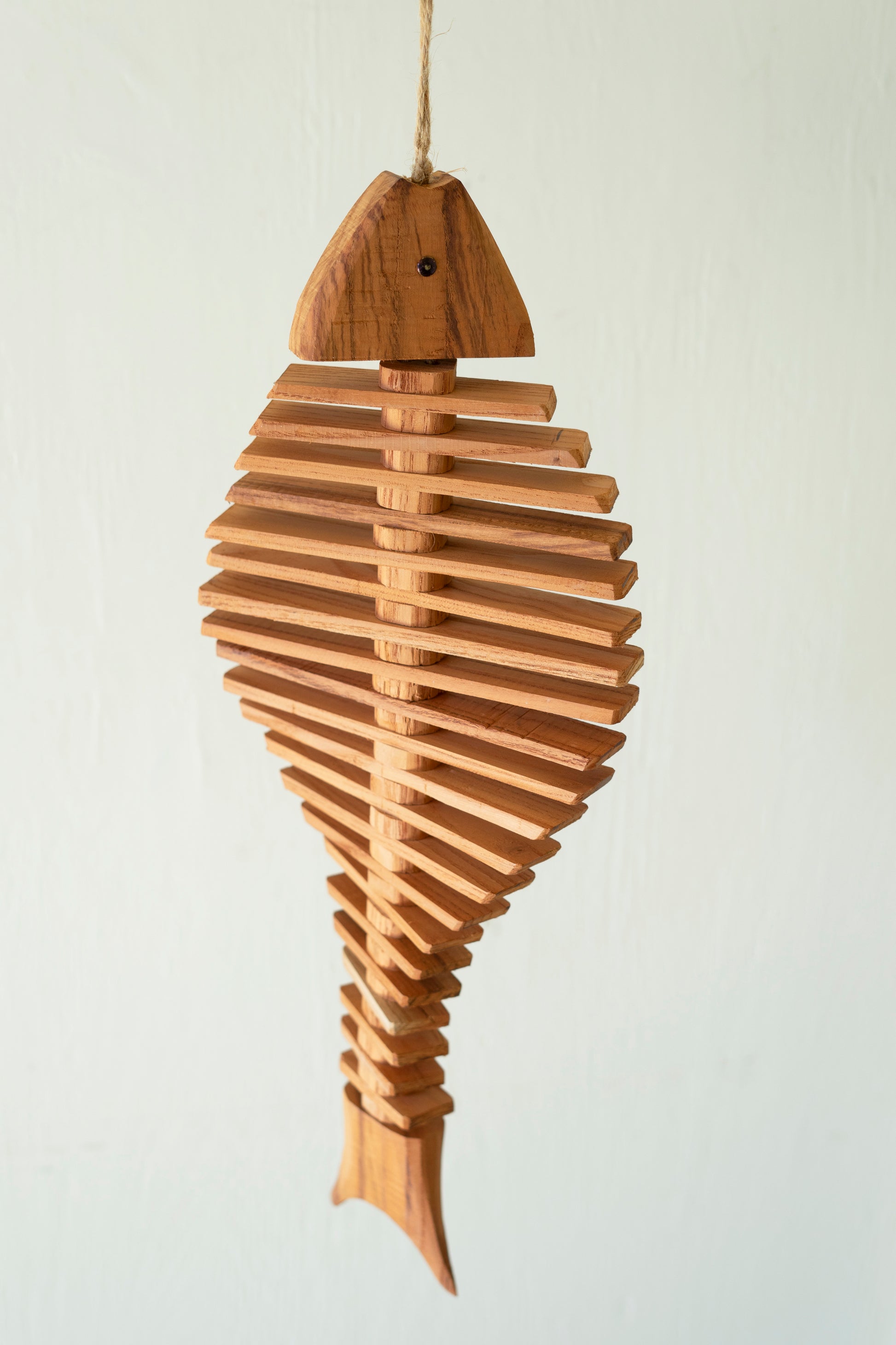 This sculptural wooden fish brings refined coastal sophistication to your home. Constructed with individually spaced slats, it captures light and shadow for subtle visual movement. Install in entryways, bathrooms, or sunlit rooms to establish a curated seaside atmosphere.