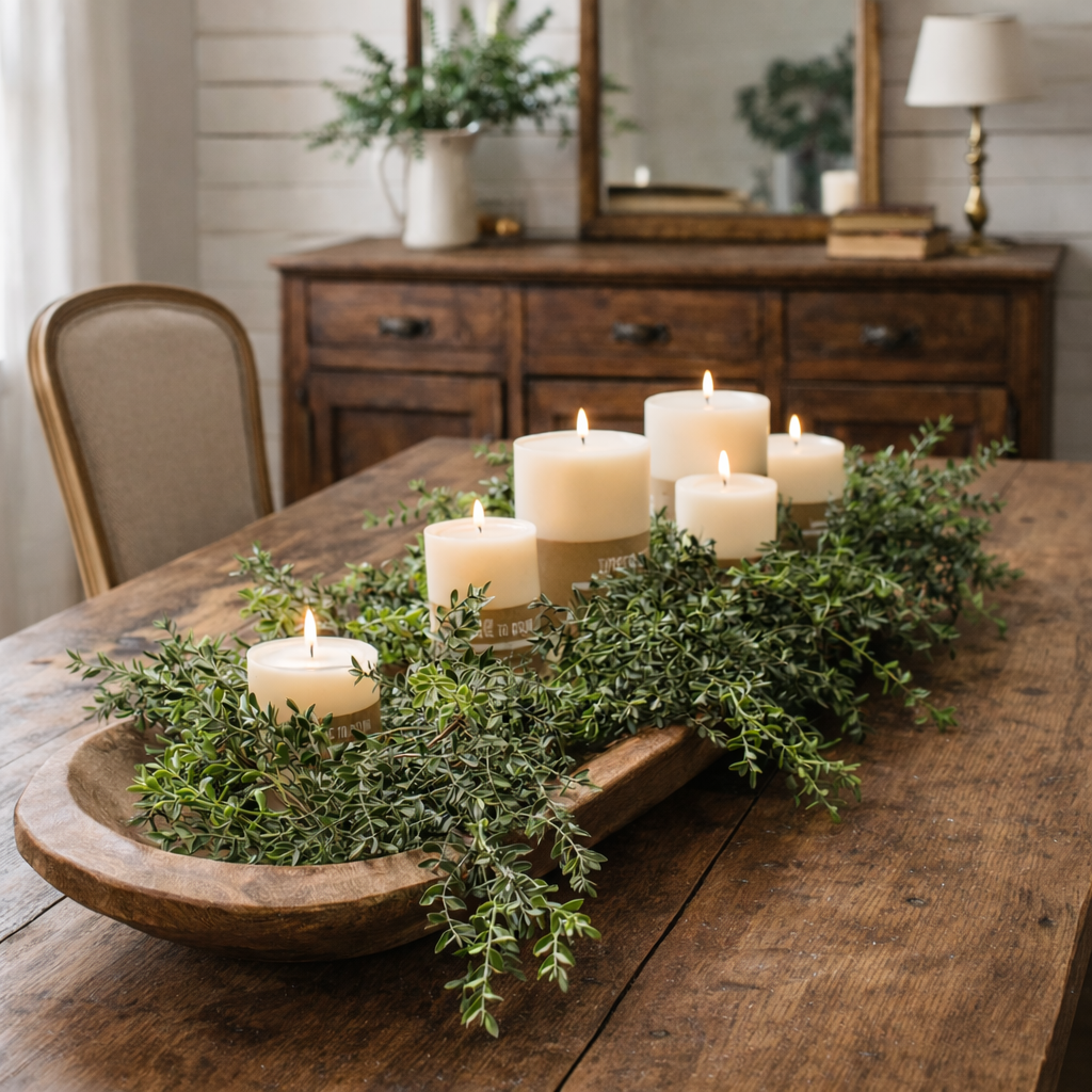 This oversized dough bowl is perfect for modern rustic decorating. Style it as a centerpiece on a long dining table layered with candles and greenery, or place it on a buffet for seasonal displays. Its extra length makes it ideal for creating dramatic arrangements that instantly draw the eye.