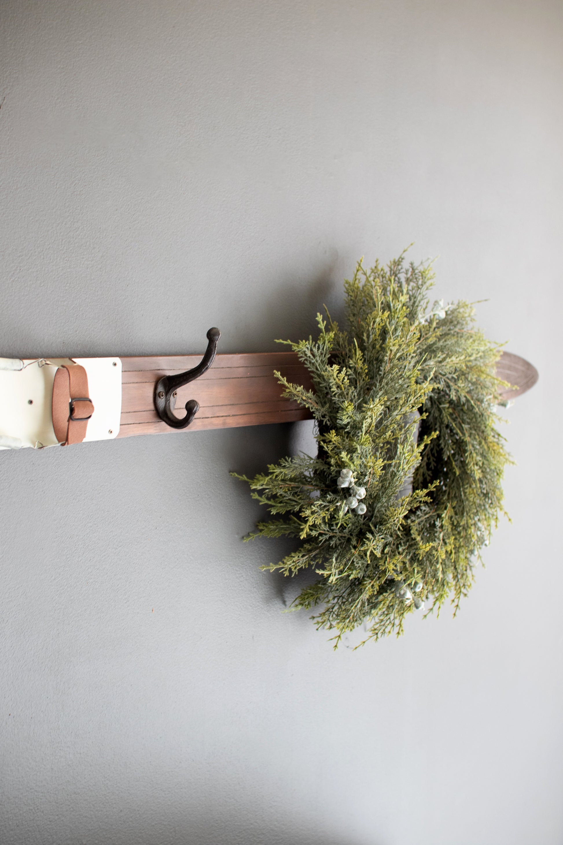 Style your entryway with the modern rustic coat rack crafted from wooden ski. A perfect blend of rustic nostalgia and functional design, it adds character to any entryway or bathroom.